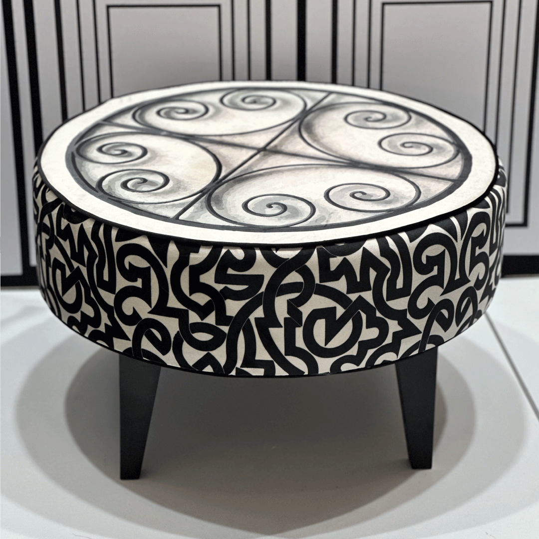 Imprimé géométrique linéaire motifs figures stylisées en trames, inspiration Graffitis Djerba Hood. Ultra compact et polyvalent, un pouf tendance et stylé, pour servir en tant que siège ou repose-pieds. L’accessoire « in » pour une déco chic et personnalisée.